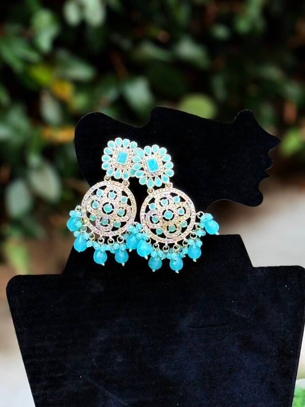 “Traditional gold-plated Chandbali earrings with intricate detailing and dangling accents — the perfect blend of elegance and charm for festive or bridal wear.”
